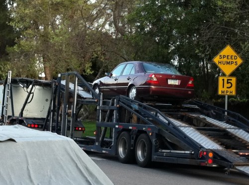 We go to the car rental office. The car they’d planned to give us was a minuscule Renault Clio, but the gods are smiling: they’re out of those and the next car up is a Mercedes C280 turbodiesel, a spectacular, fast, comfortable car with the ugliest upholstery this side of the 1986 Golf GTI. In fact, it would make a nice golf shirt. There’s no baby seat though. The agent wants us to drive to Nice–50 kilometers in the wrong direction–to get one from another office. We’ve got a better idea. We make the rental agent buy us one at the local Kids R Us, and it’s the best baby seat we’ve ever used. We regret to this day that we didn’t steal it.